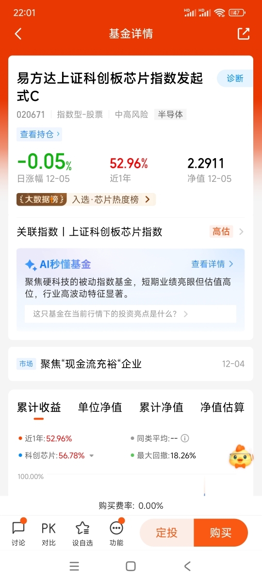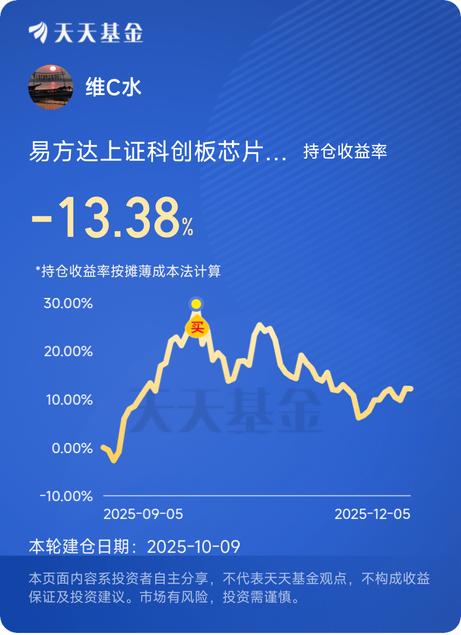 12月5日,第十六天打卡发帖,今日科创芯片微跌,$易方达上证科创板芯片指数发起式