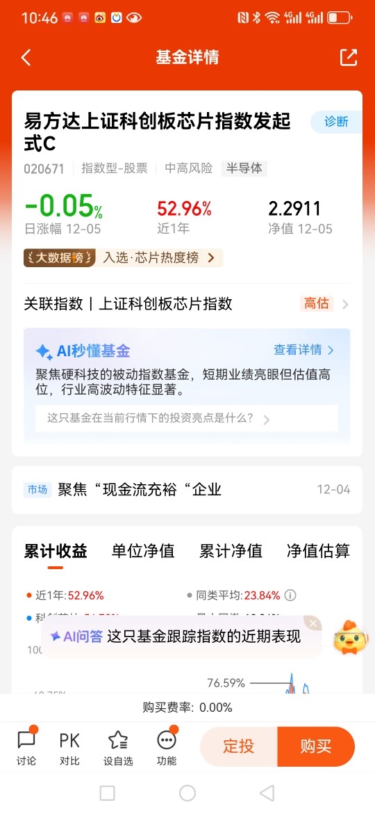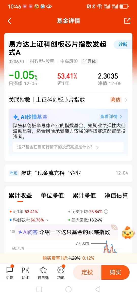 12月5日,今天芯片指数震荡整理,跌幅0.05个百分点,最近走强迹象明显,可以重