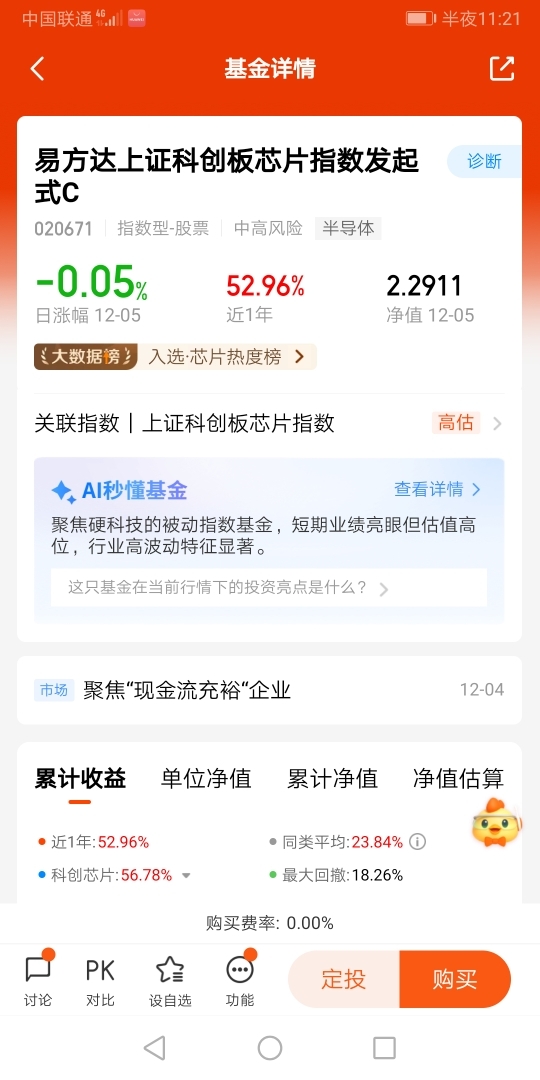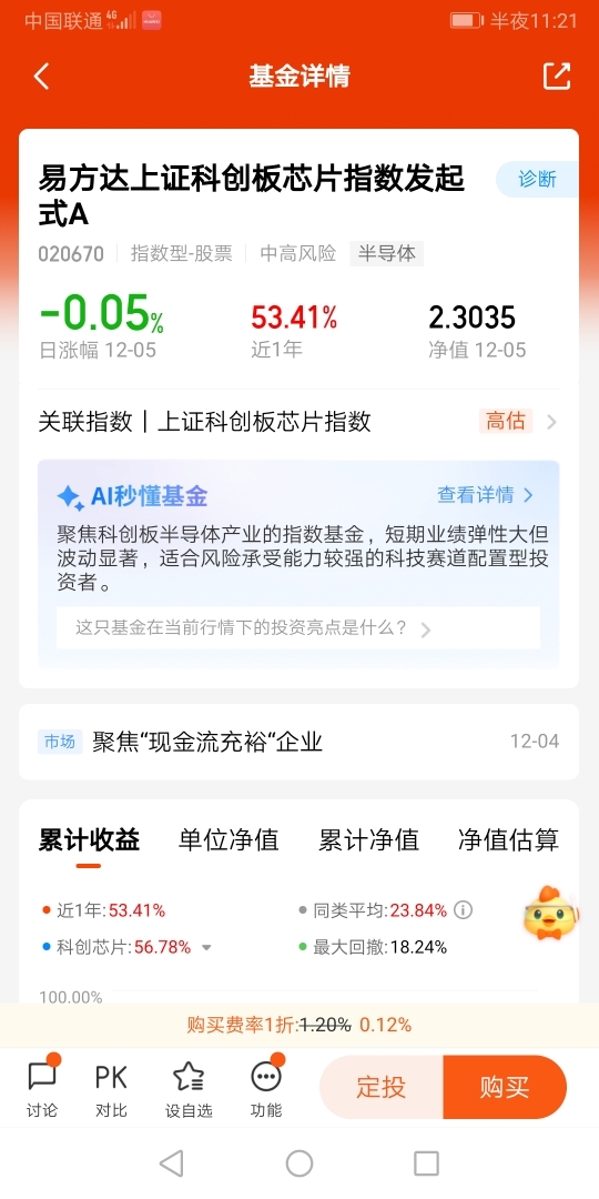 打卡第十一天!今天是12月5日,易方达上证科创板芯片指数发起式C(020671)