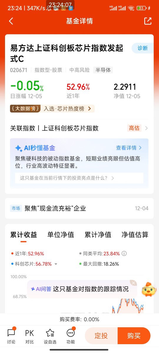 12月5日,今日半导体板块波动,$易方达上证科创板芯片指数发起式C$跌-0.05