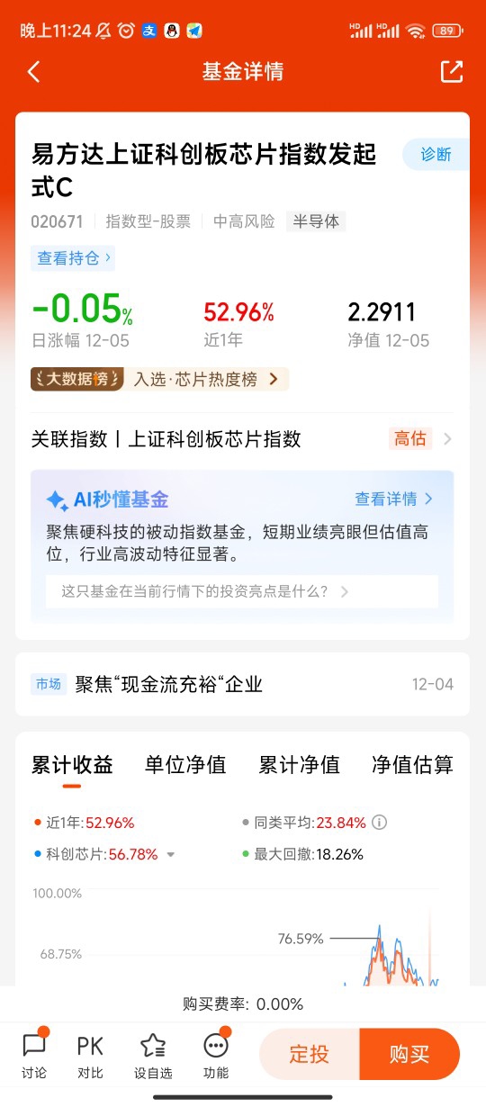 #观点搭子团火热招募中!# #热点话茬# $易方达上证科创板芯片指数发起式C$ 12月5日,上证科创板芯片指数早盘呈现震荡调整态势,盘中涨跌互现,但结合近期走势来看,半导体芯片板块的反转迹象正逐步显现。前一交易日,该指数低开高走收涨2.34%,成交额大幅放量近29%,换手率显著提升,资金回流信号明显。这一波行情并非孤立,背后是多重逻辑共振。行业层面,去库存接近尾声,需求端持续回暖,AI、新能源汽车等领域催生算力与存储芯片的刚性需求;政策端,国家大基金与地方政策协同发力,加码支持核心环节,国产替代进程加速。随着产业景气度攀升与资金布局持续,半导体芯片板块有望逐步摆脱前期调整,开启估值修复与成长共振的新阶段。@易方达基金