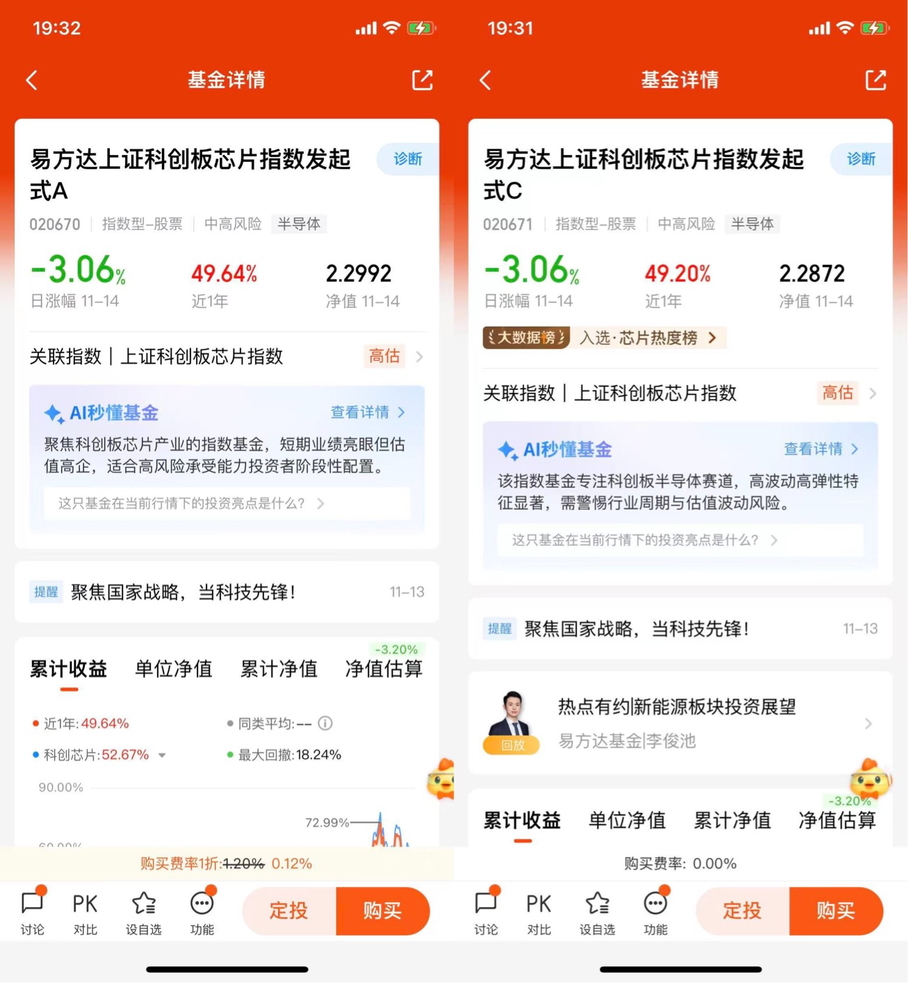 易方达 020671 精准覆盖澜起科技、佰维存储等科创板龙头,成分股涵盖车规芯片、半导体材料全链条,近一年 49.2% 涨幅有实打实产业支撑。持有 7 天免赎回费,普通人入场无压力,基金经理李栩深耕科技指数,标的筛选精准。