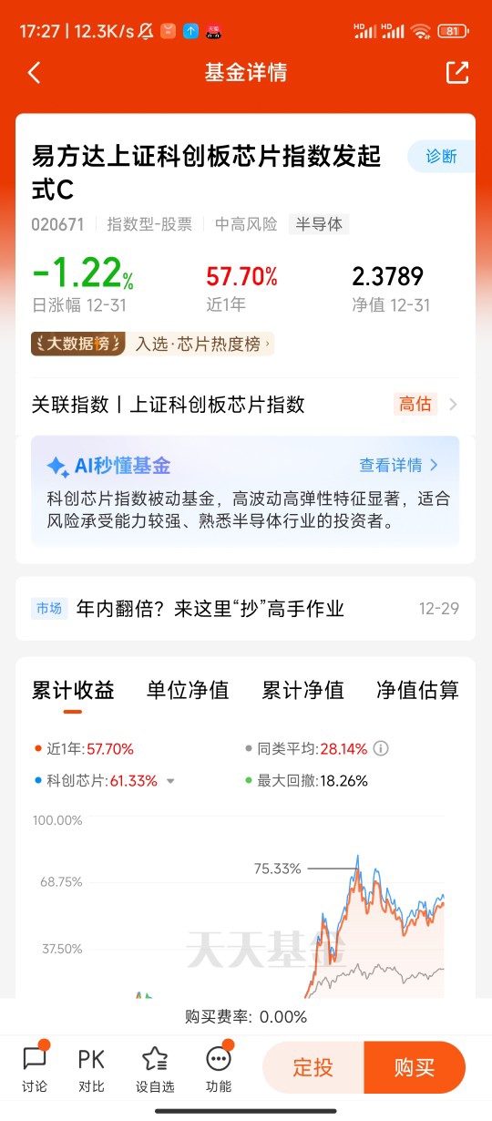 #我的年度投资操作# $易方达上证科创板芯片指数发起式C$