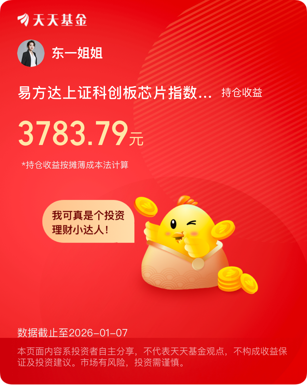 不枉费我重仓你呀,这一路走来,还得是你最赚钱,我的$易方达上证科创板芯片指数发起式C$ 基金,你跟踪的科创芯片指数目前多头形态良好,短期我还没有做减法的计划,关注5日均线的支撑力度,只要支撑还在,我就要格局到底!