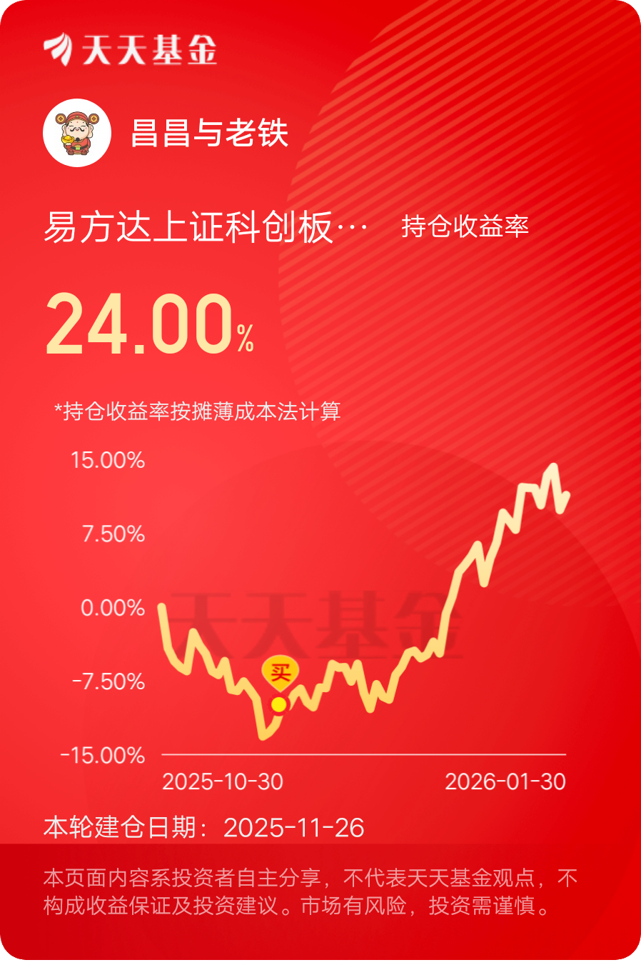 2025年的投资旅程,这五只基金不仅带来了可观的收益,更教会我“分散布局、长期持有”的道理。未来,我会继续持有这份组合,既坚定科技赛道的长期价值,也珍惜价值板块的稳健收益,在市场的涨跌中,保持理性与耐心,走好每一步投资之路。$易方达上证科创板芯片ETF联接发起式C$ #晒收益#