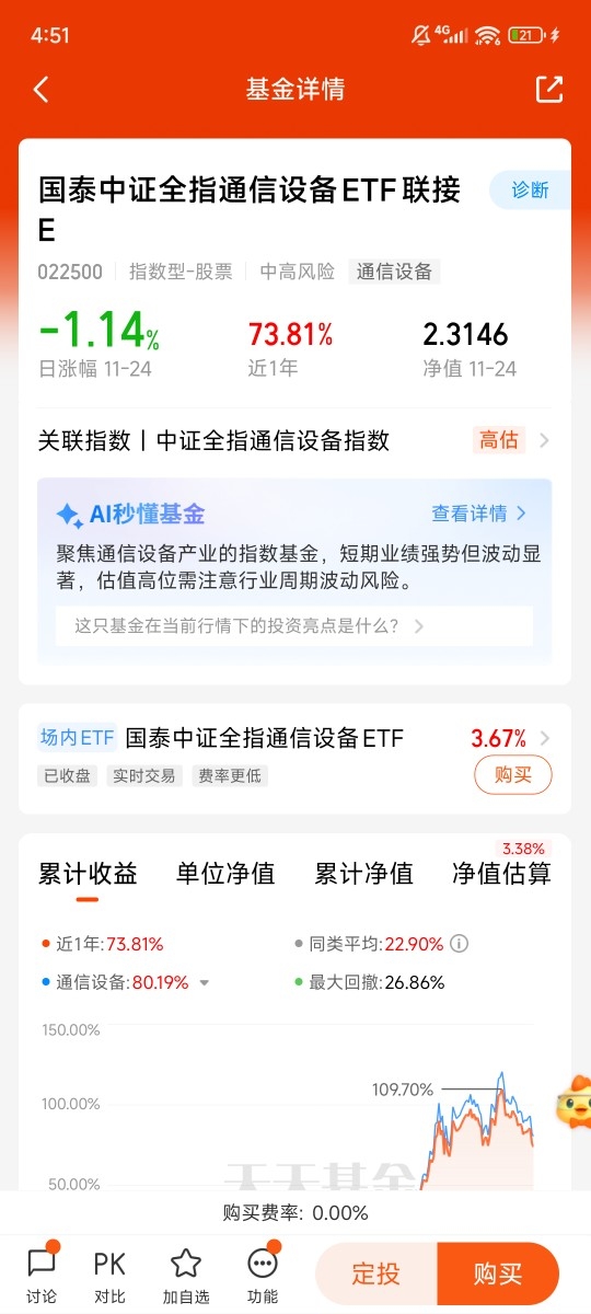即使是投资同一赛道,也有策略优化空间。在持有博时通信设备指数C的同时,我关注到国泰这款产品在某些细节上(如费率结构、规模流动性)可能更具优势,因此做了分散配置。同时最近谷歌在ai大模型和芯片上发力;美国总统特朗普启动人工智能“创世纪计划”,对通信行业是很大利好,目前看今天国泰这个预估涨超3%。聚焦高景气赛道,同时精挑细选工具,长期来看回报会更加稳健。