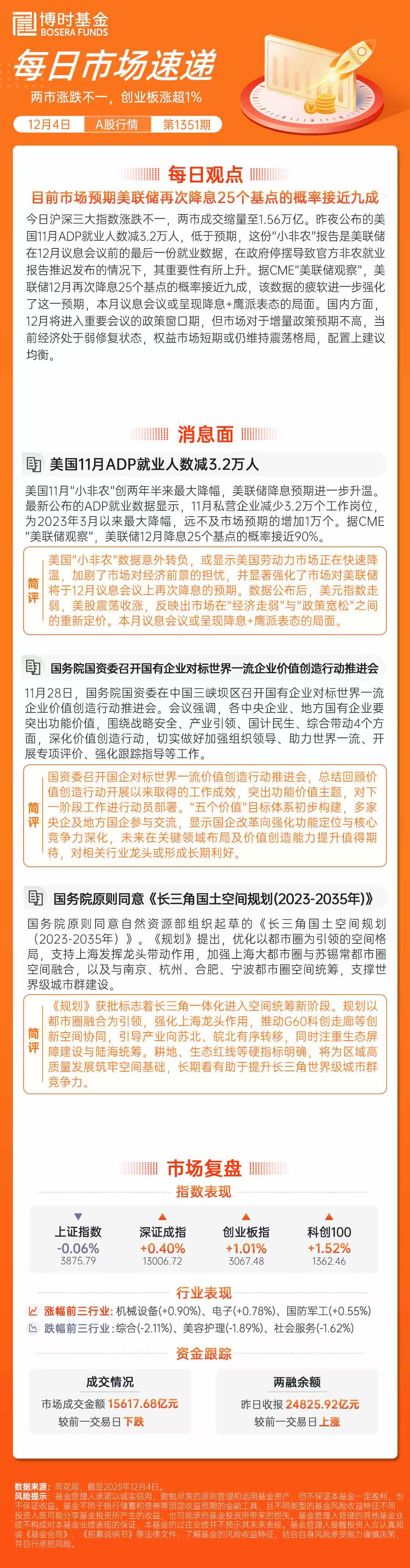 【博时市场点评12月4日】两市涨跌不一,创业板涨超1%