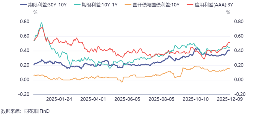宏观数据上,11月CPI同比上涨0.7%,核心CPI同比上涨1.2%,基本符合预期,反映了消费正处于温和复苏阶段,虽然CPI这两个月重回正增长,不过目前整体需求仍然偏弱,基本面还是相对利好债市。