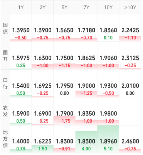 利率债:晴天,涨多跌少。