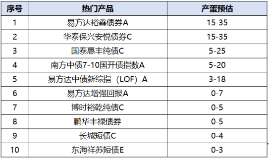 热门产品产蛋预估:(根据16:00行情预测,仅供参考,以实际产蛋为准)