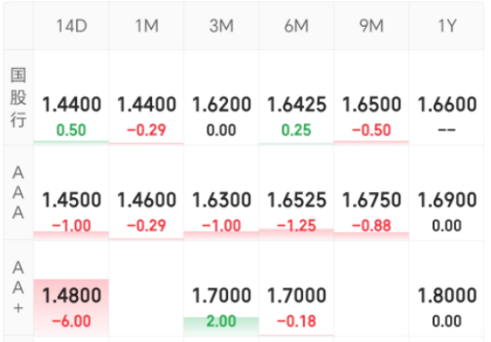 同业存单:晴天,涨多跌少。