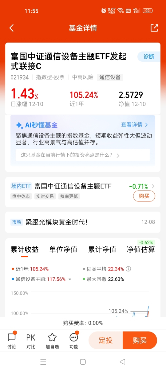 通信板块最近大好,收益不错$富国中证通信设备主题ETF发起式联接C$昨天收益1.