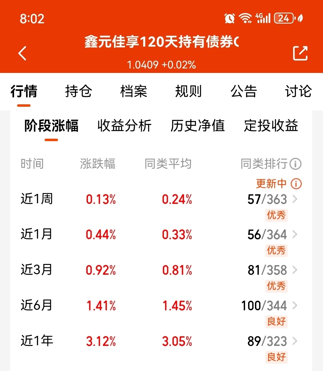 $鑫元佳享120天持有债券C$中低风险稳护航,近三月涨0.92%、近一年涨3.1