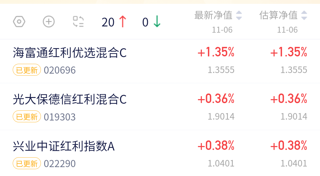 $兴业中证红利指数A(OTCFUND|022290)$上涨0.38%