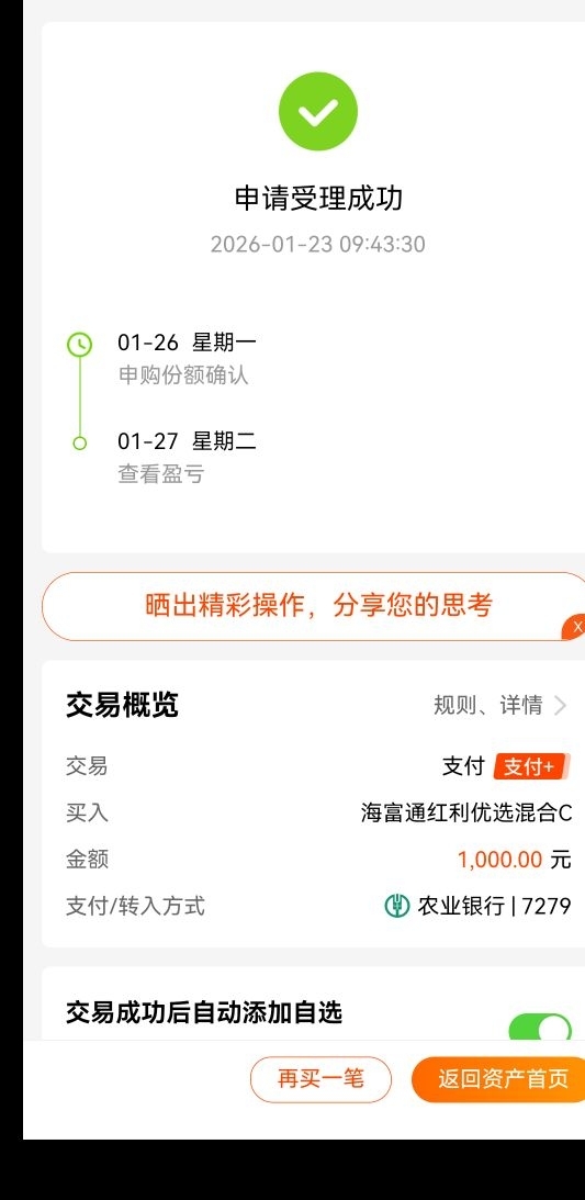 这支$海富通红利优选混合C$ 我还是继续+1000;