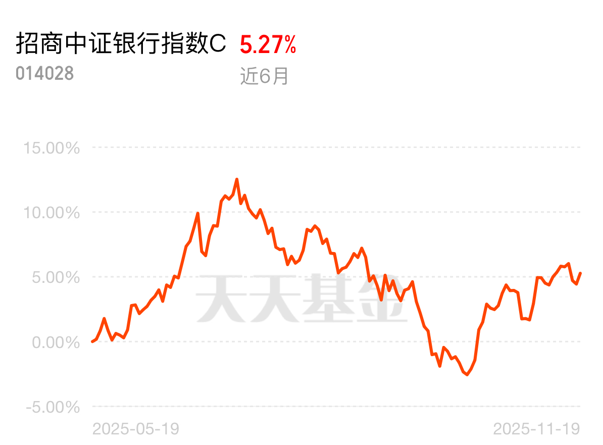 近期银行板块政策利好频出,加上公募基金低配修复,增量资金不断进场。招商中证银行指数C把握机遇,近6个月收益5.27%,跟着政策和资金,投资更有底气。
