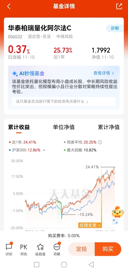 这时候选华泰柏瑞就挺合适:它专做小微盘,但比热门同类基金“靠谱”多了——近三个月收益比别人猛,最大回撤还控制得更好。市场乱的时候,找个“涨得快还稳得住”的,既能跟着小微盘吃肉,又不用怕突然被套,这不比追题材踏实多了?$华泰柏瑞量化阿尔法C$ #科技热点摊开业啦#