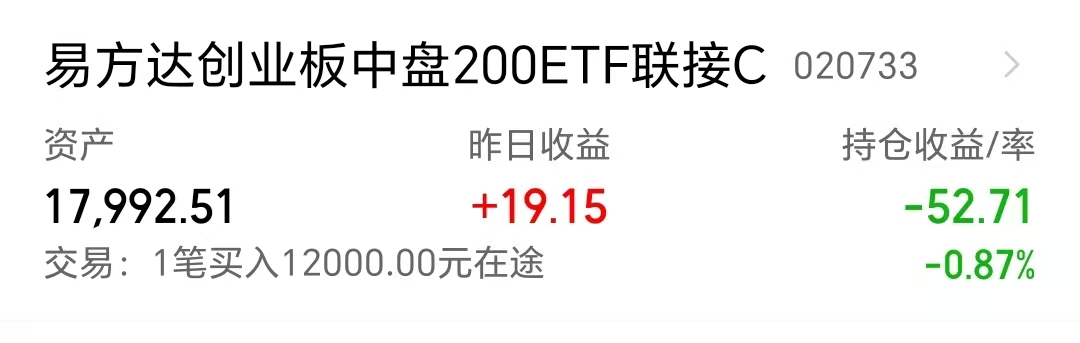 宽基:$易方达创业板中盘200ETF联接C(OTCFUND|020733)$+12000元。