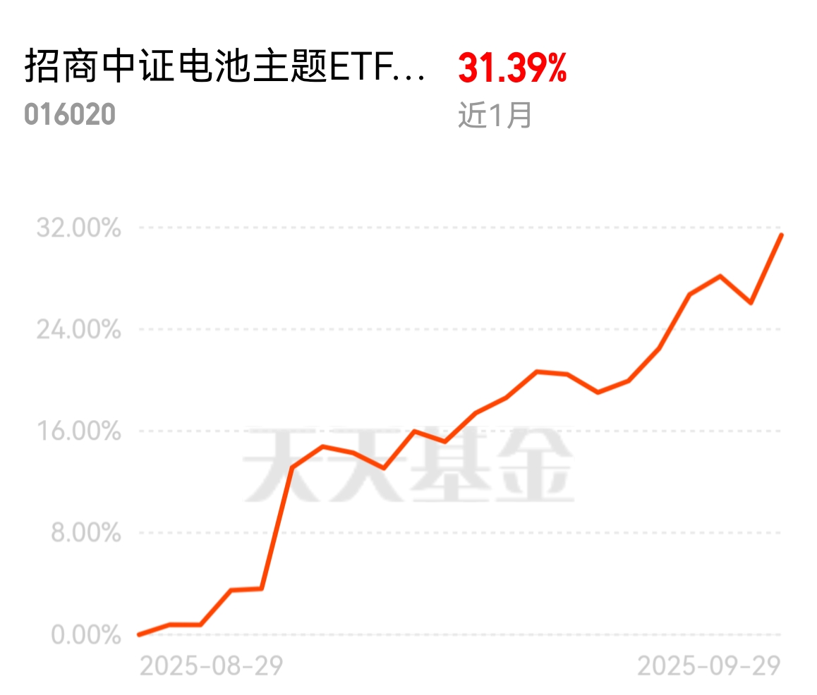 昨晚电池股涨得不错4.22%,今天指数延续强势。这指数选的都是优质标的,固态电池占比高,招商中证电池主题ETF联接C近1个月31.39%,跟着赚不费劲。
