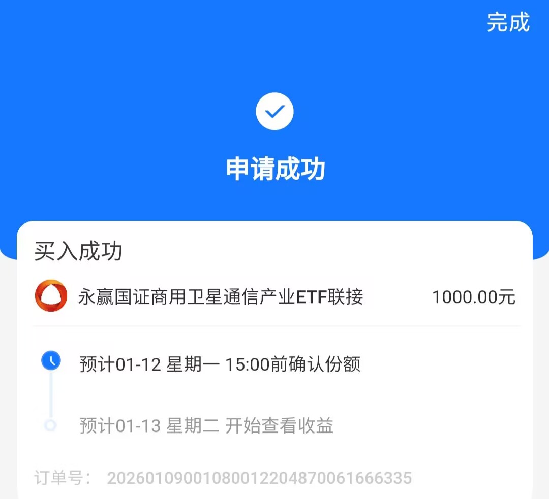 今日买入1000元 $永赢国证商用卫星通信产业ETF发起联接C(OTCFUND|024195)$,该基金是卫星通信产业指数基金,最近呈现疯狂上涨的态势,近一个月收益大涨35%,昨天大涨4.97%后今天又再次大涨,实在是太强了,我在大涨前就持续布局了一些,现在已经收获了不少,回头看是最近做的最正确的投资之一。