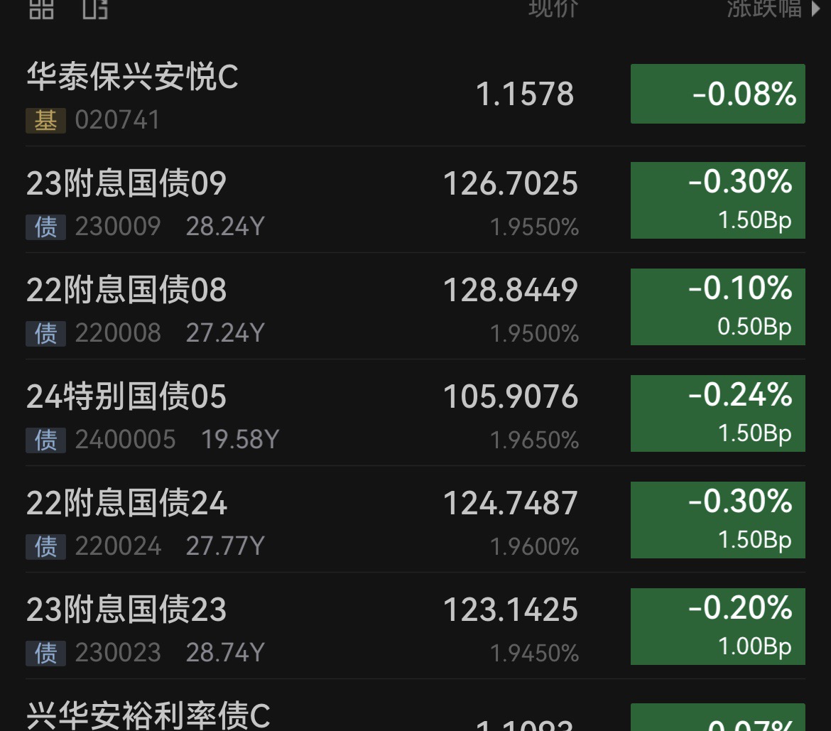 利率债继续回落,跌幅变大,超长期国债绿1.5bp,重点是在扩大跌幅,华子目前已经