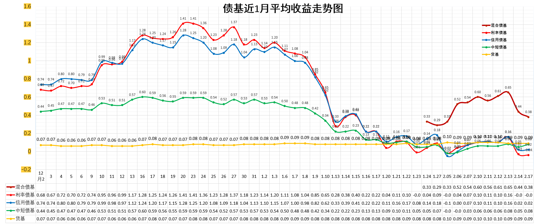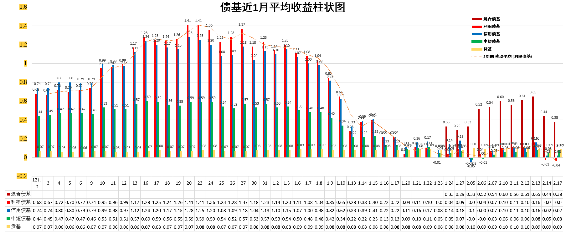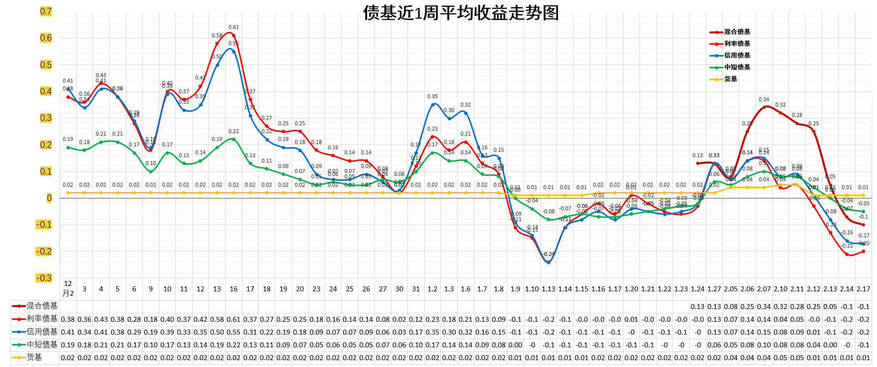 2.18【债基收益走势图】混合债基近1周平均收益低于货基!受债基拖累!