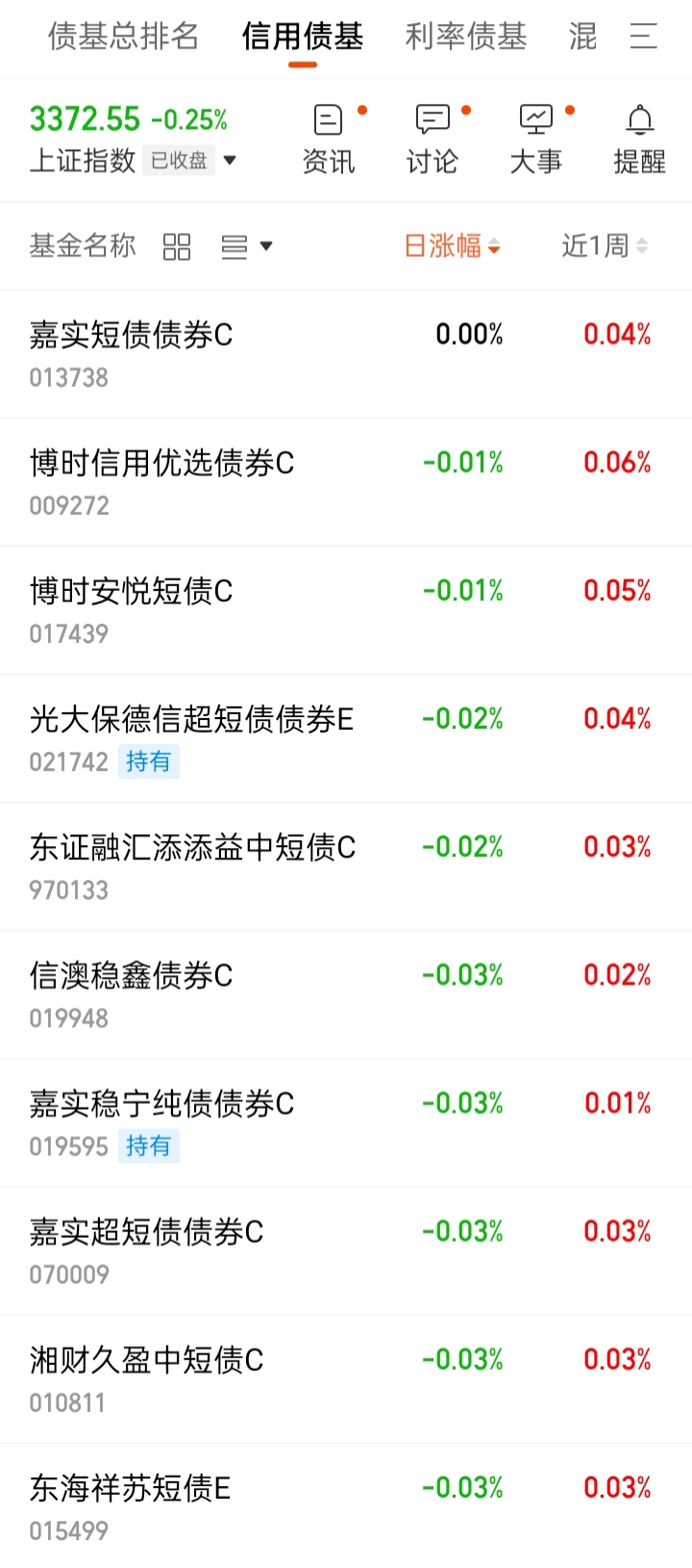今天司机少量持仓的嘉实新趋势混合C、嘉实稳宁纯债债券C、光大保德信超短债债券E分别收3、0、-2蛋,涨幅排名前十,表现较好。