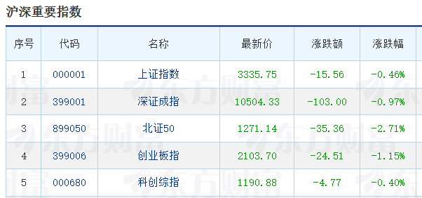 A股市场重要指数:全部下跌。雨天。今天偏股混基可能下跌。