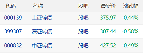 可转债主要指数:全部下跌。今天偏可转债混基可能下跌。