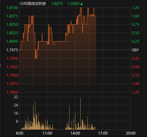 10年期国债活跃券:上行1.00BP,雨天,下跌。