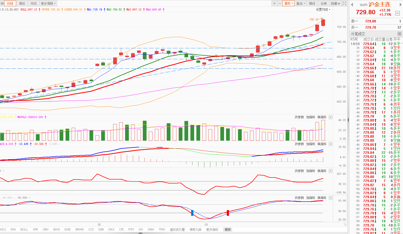 沪金主连:大涨1.71%,日K线在5日均线之上,今天沪金大涨,后市还有继续上冲的可能。黄金是一类可以长期配置的资产,逢低分批买入更好。