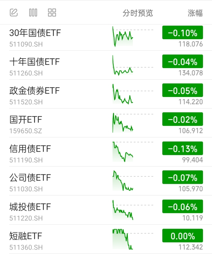 信用债ETF、公司债ETF、城投债ETF,代表信用债基。全部下跌