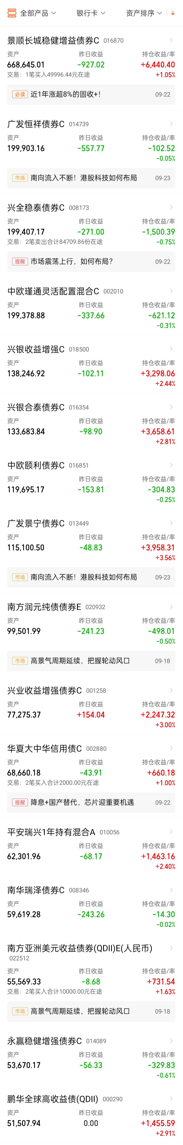 $永赢鑫欣混合C(OTCFUND|018603)$。$南方中债7-10年国开行债券指数A(OTCFUND|006961)$。$鹏华丰禄债券(OTCFUND|003547)$。$东方添益债券(OTCFUND|400030)$。$博时恒乐债券C(OTCFUND|014847)$。$华泰保兴安悦债券A(OTCFUND|007540)$。$国泰惠丰纯债债券A(OTCFUND|007214)$。$易方达增强回报债券A(OTCFUND|110017)$。$方正富邦鸿远债券C(OTCFUND|015909)$。