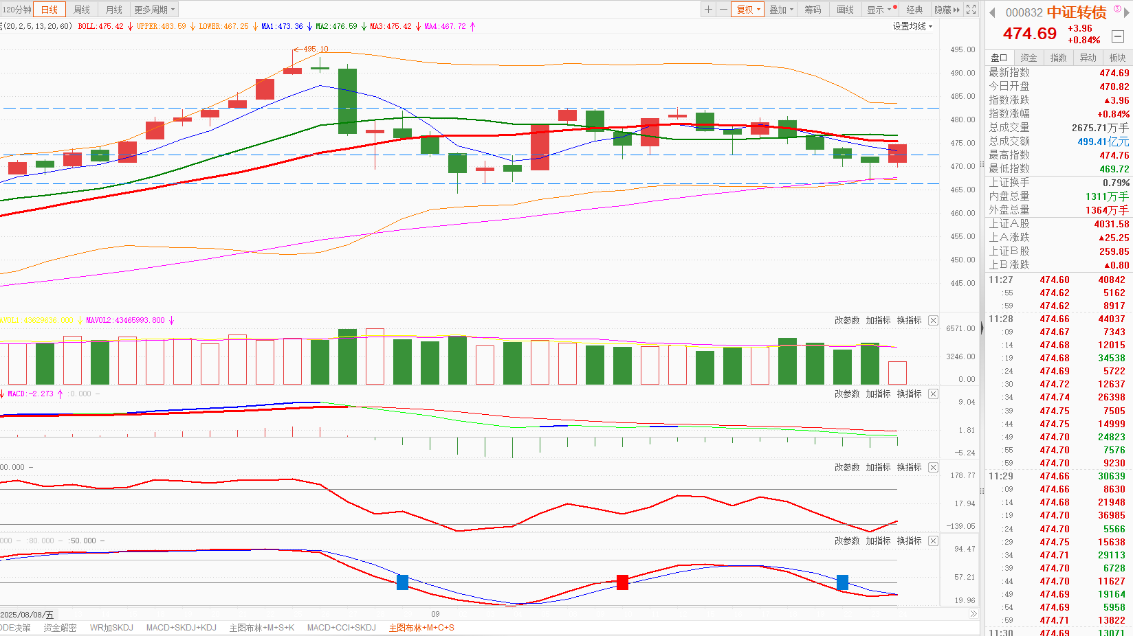 信用债:今天二级市场信用债雨天,表现较差。信用债ETF收0.13%,日K线在5日均线和两点林线下轨之下,走势非常差。仓位重的乘反弹卖出,降低仓位。