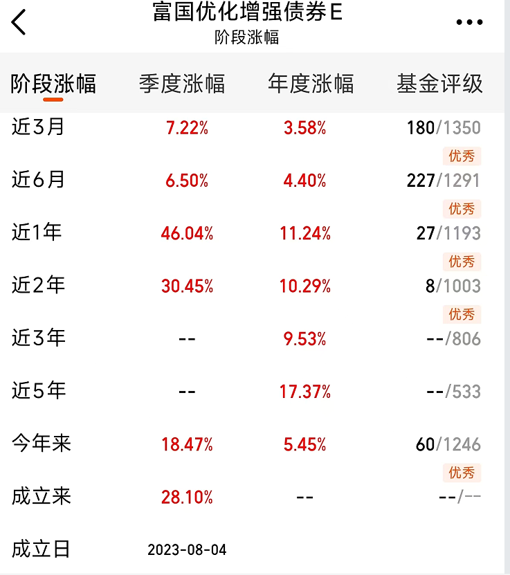 跟你们说$富国优化增强债券E$(018980)这基金真的很好。去年赚8.7%,不错,但毕竟债比较牛,那今年还能赚18.47%,这就说明这基金是真的很会抓行情了。也难怪现在是机构占比超50%,近一年46%的收益谁看都有料。同样是富国的,$富国久利稳健配置混合E$(019370)就更猛一点,一年能挣72%,但波动也会更大一点。#光刻机反复走强!行情规模有多大?#