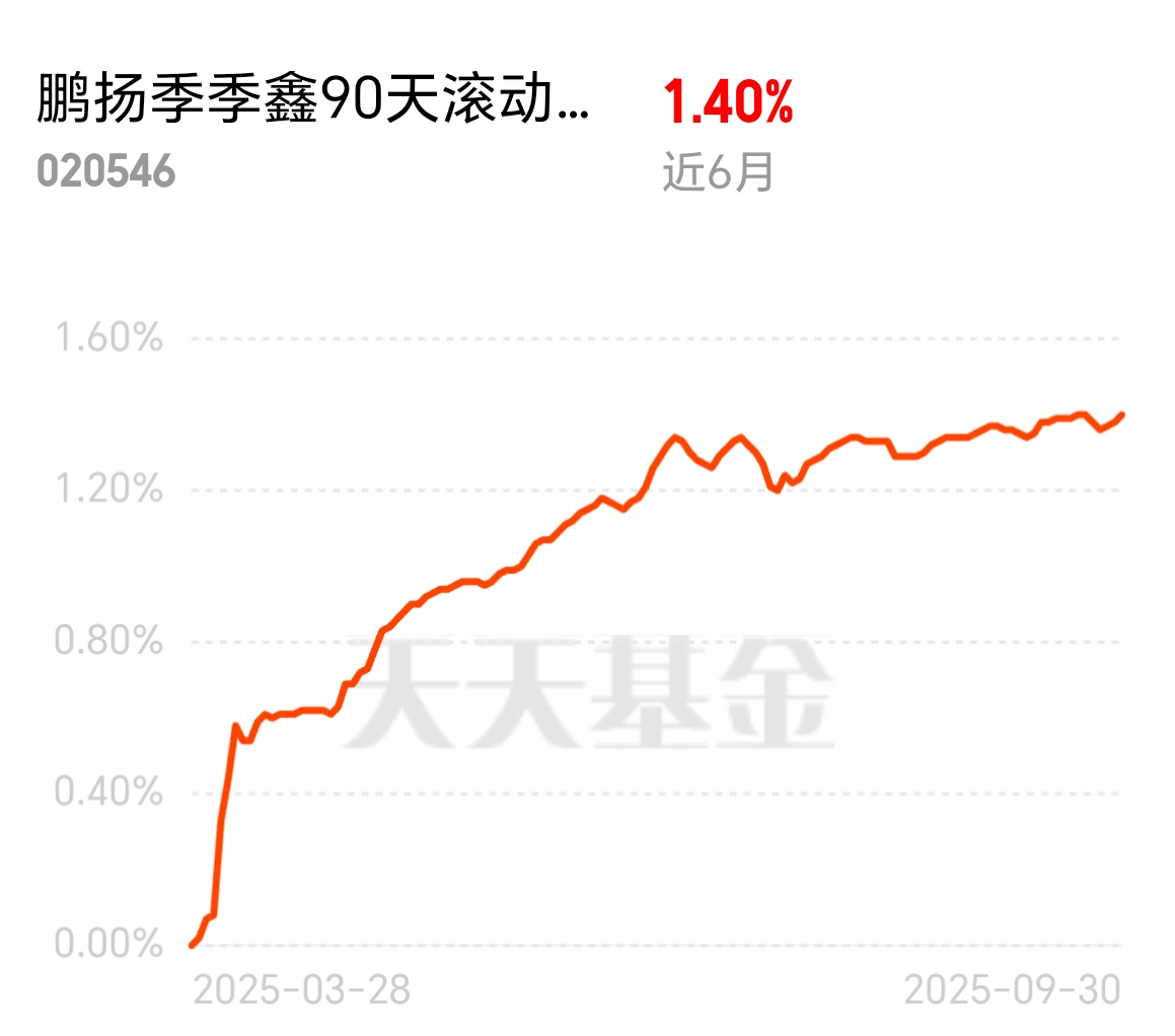 $鹏扬季季鑫90天滚动持有债券C$连涨3天,债市逐步企稳了,半年收142个蛋,稳