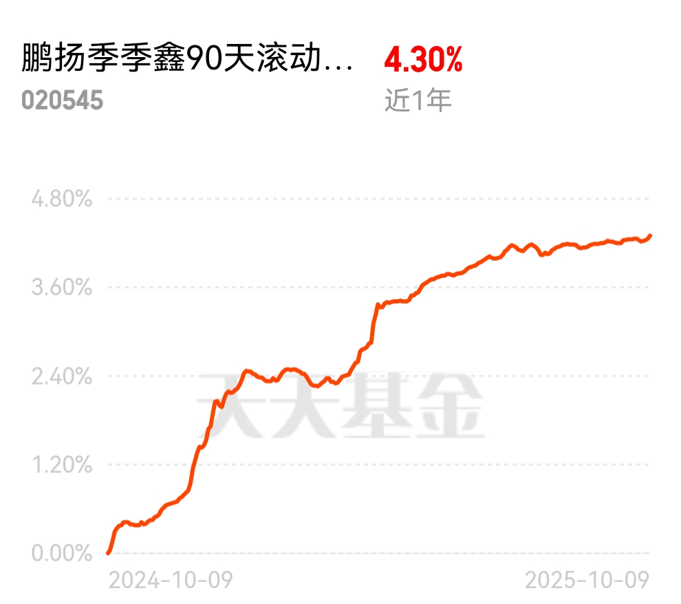 股市虽然赚钱效应不错,但波动确实大,还是要做好股债搭配。我的$鹏扬季季鑫90天滚