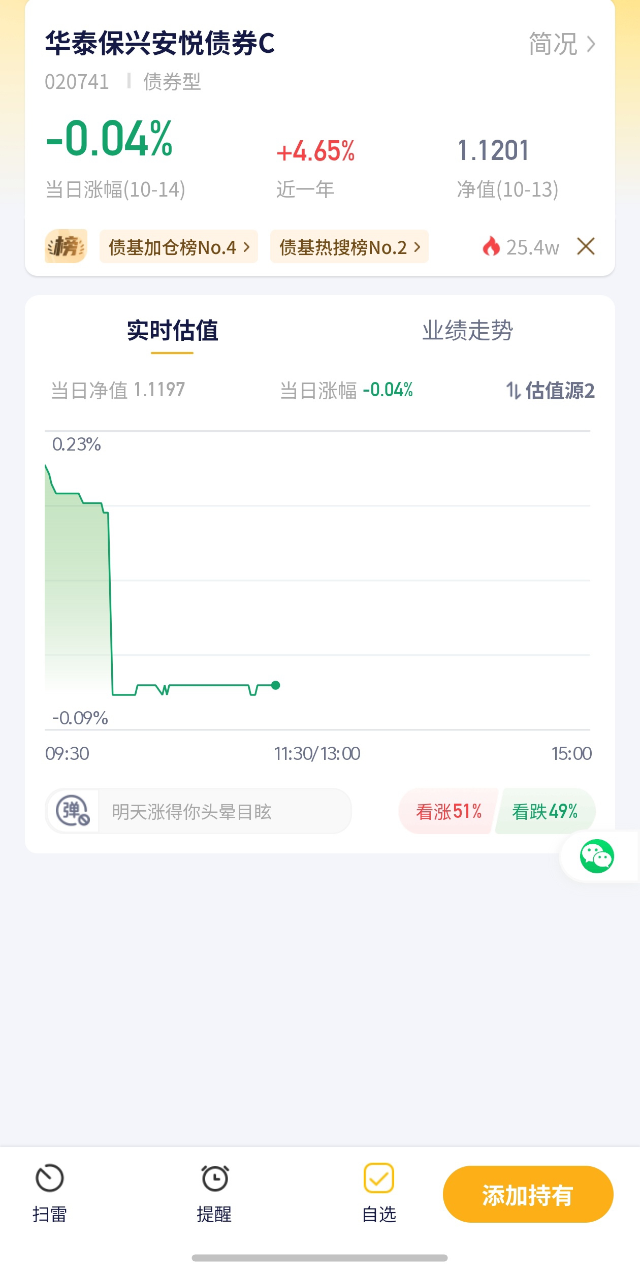 【华泰保兴安悦债券C估值播报+10.14行情】华泰保兴安悦债券C今日估算涨幅