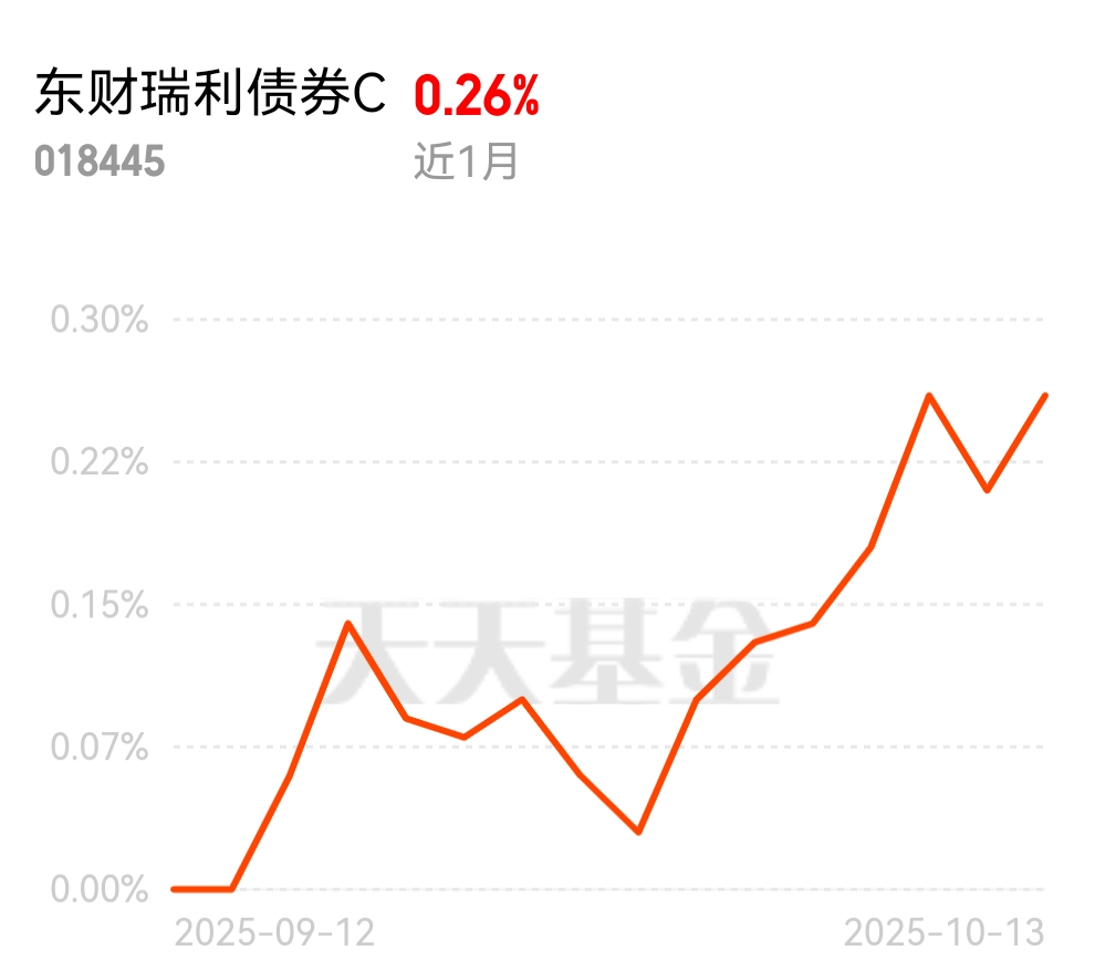 债市这几天止跌反弹,资金面也转松了些,算是熬出头了。西藏东财瑞利债券C近日涨0.05%,近1个月收益0.26%,业绩稳得很,趁这波行情加点仓准没错。