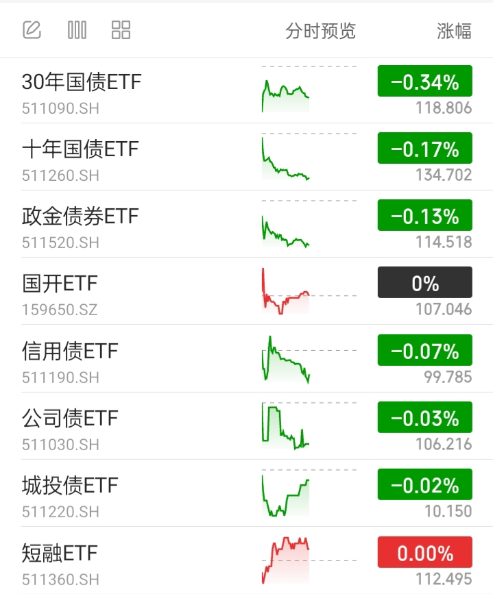 信用债ETF、公司债ETF、城投债ETF,代表信用债基。全部下跌