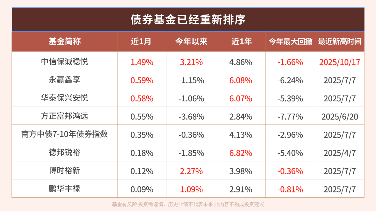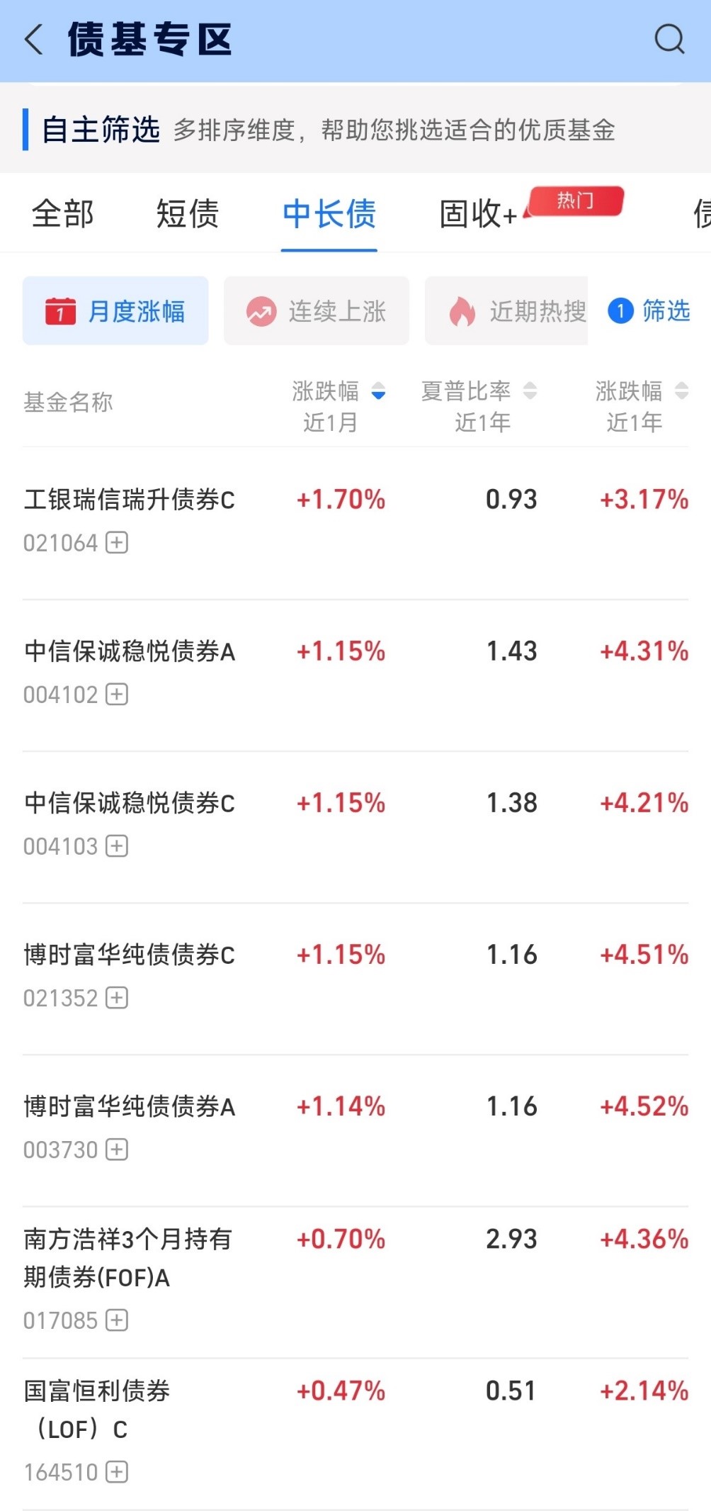 不过这种工具产品回撤实在太大了,普遍超过-5%,尤其是方正富邦鸿远A高达-7.77%,跌起来毫不含糊,所以我一直不推荐散户买这种,踏错了节奏会很难受。更适合风险偏好较高、且对利率下行趋势有强烈信心的投资者,属于“高赔率”但“高波动”的选择,在当前时点,可能需要等待更明确的右侧信号。$华泰保兴安悦债券A(OTCFUND|007540)$ $永赢鑫享混合C(OTCFUND|018648)$ $德邦锐裕利率债债券A(OTCFUND|010309)$ $方正富邦鸿远债券C(OTCFUND|015909)$