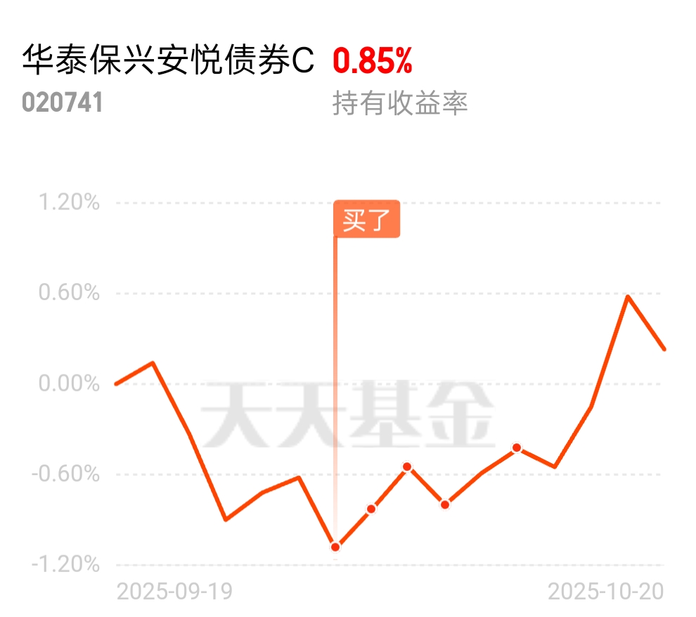 还好底部补了点,目前还是正收益,今天跌的话我就继续加点$华泰保兴安悦债券C$