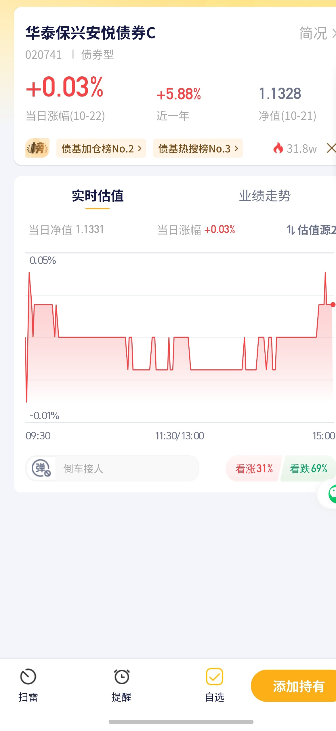 【华泰保兴安悦债券C基金估值播报+当日行情】