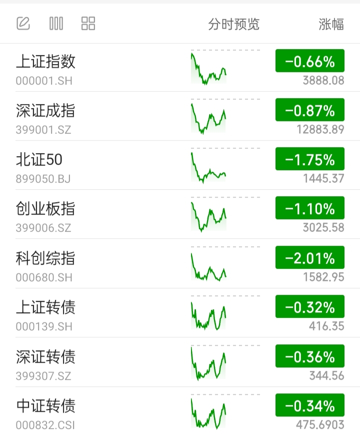 A股市场重要指数:全部下跌。今天偏股混基可能下跌。