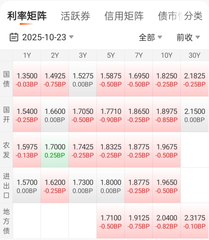 今天10年国债活跃券先上后下,收-0.25BP,上涨,最新1.7625,机构预测近期运行区间可能在1.75-1.85。极限上限1.90。