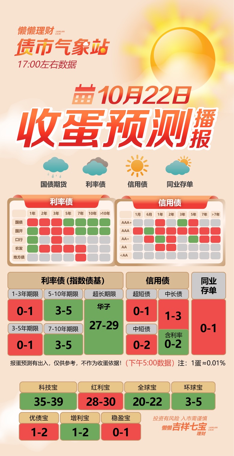 信用债方面,超短债收0-1蛋;中短债收0-2蛋;中长债收1-3蛋。同业存单收0-1蛋。