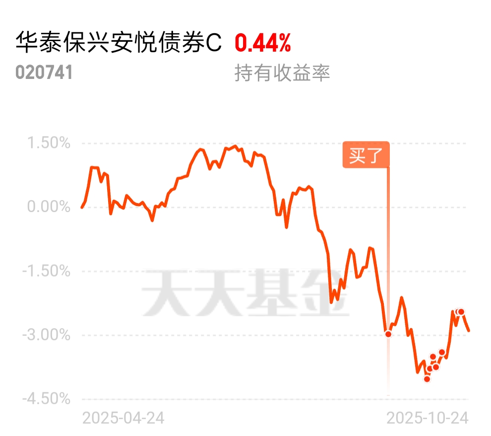 最近债市一般,今天开盘又不太好,期待可以拉升一下吧$华泰保兴安悦债券C$