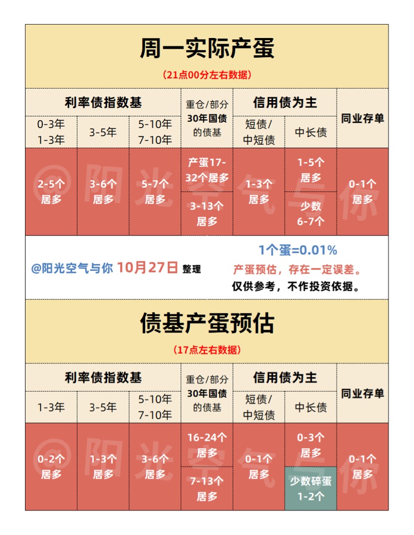 而且今天纯债基金普遍产蛋高于预估,可能也是受到了盘后影响。当然了,17点之后的债券盘面涨跌会合计在明晚的债基净值里面。还有多少人持仓纯债基金呢?持仓比例多少呢?