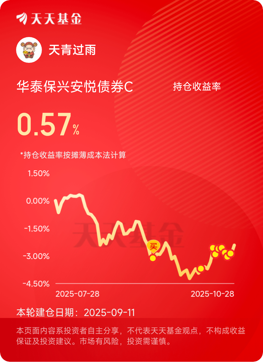 最近越来越棒了,昨天又收50个蛋$华泰保兴安悦债券C$