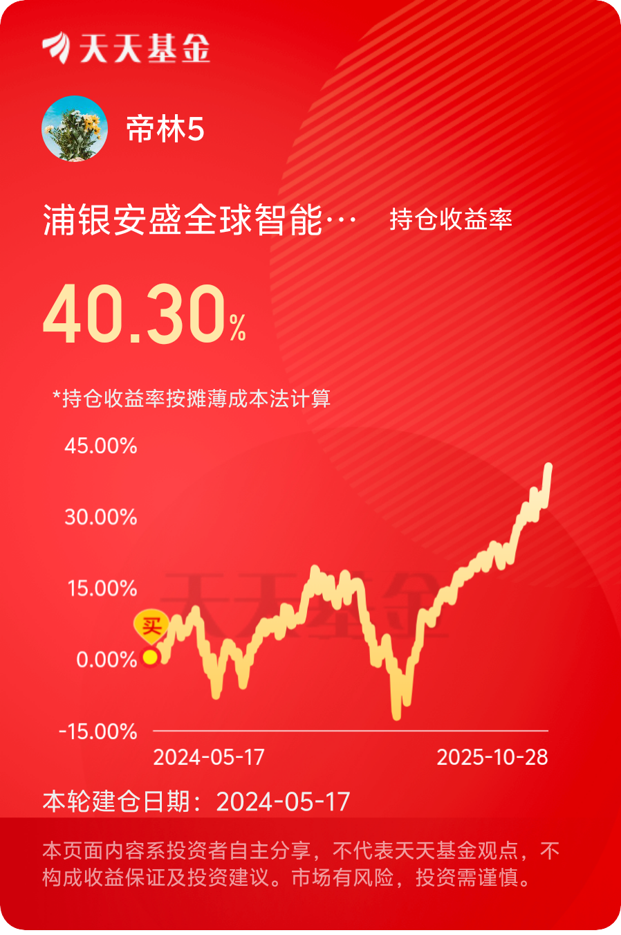 高盛此前曾表示,牛市还没结束,$浦银安盛全球智能科技(QDII)C$ $浦银安盛全球智能科技(QDII)A$近一年涨超27%,加仓不限量。#晒收益#